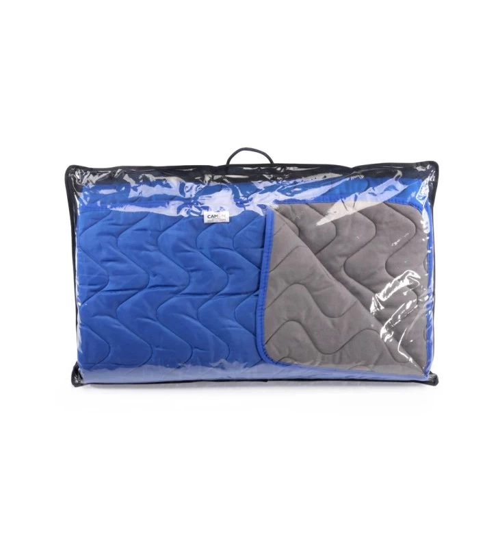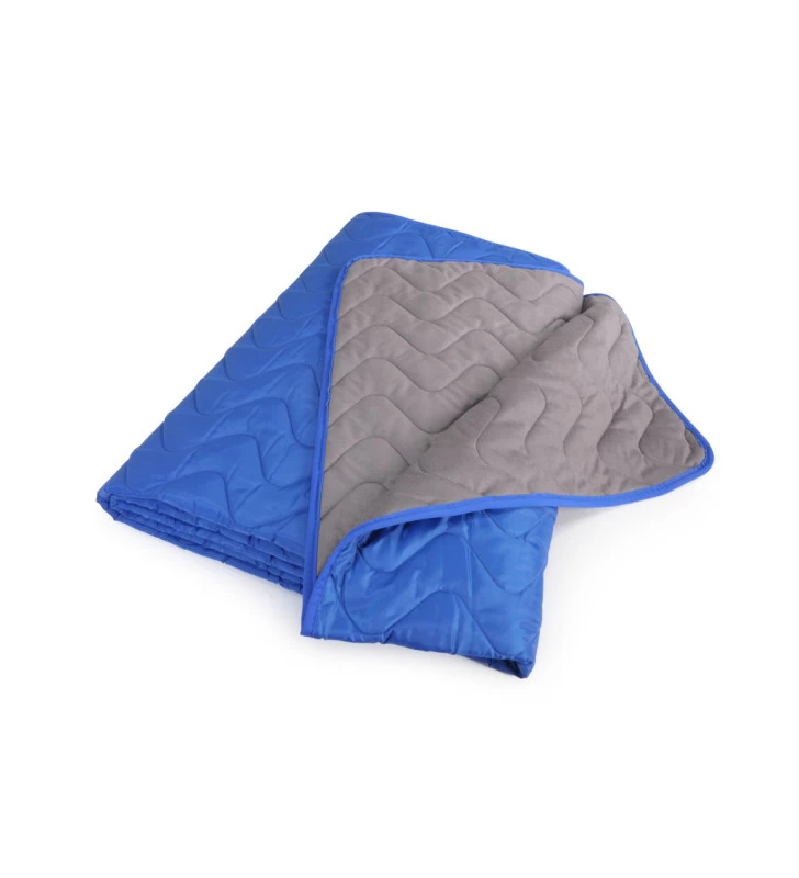 Pratica ed elegante coperta trapuntata bicolore blu-grigia in microfibra.