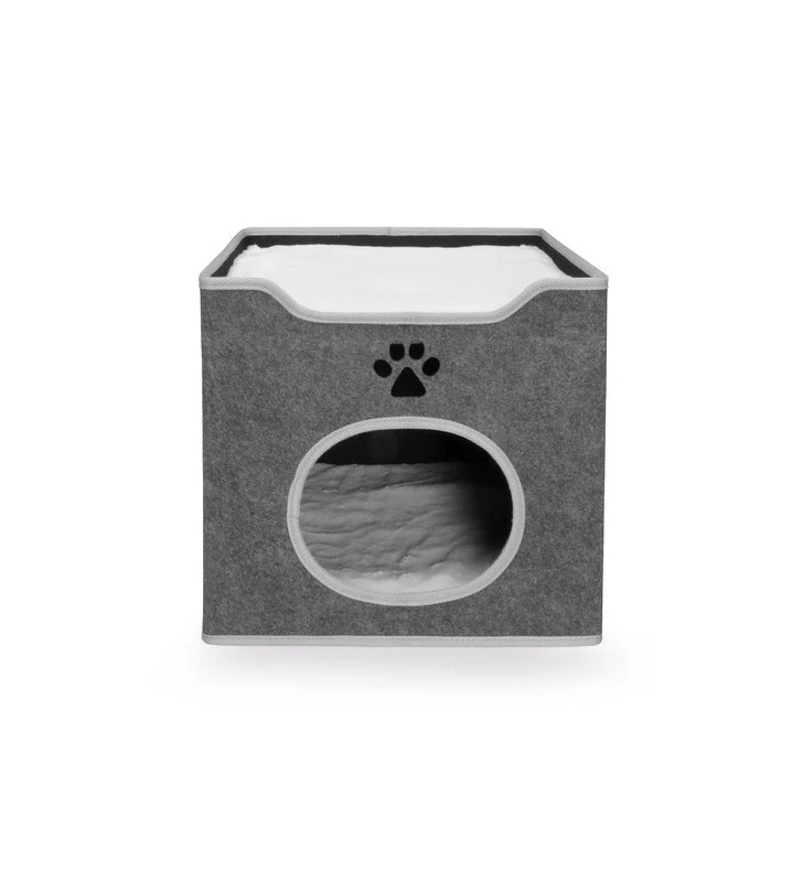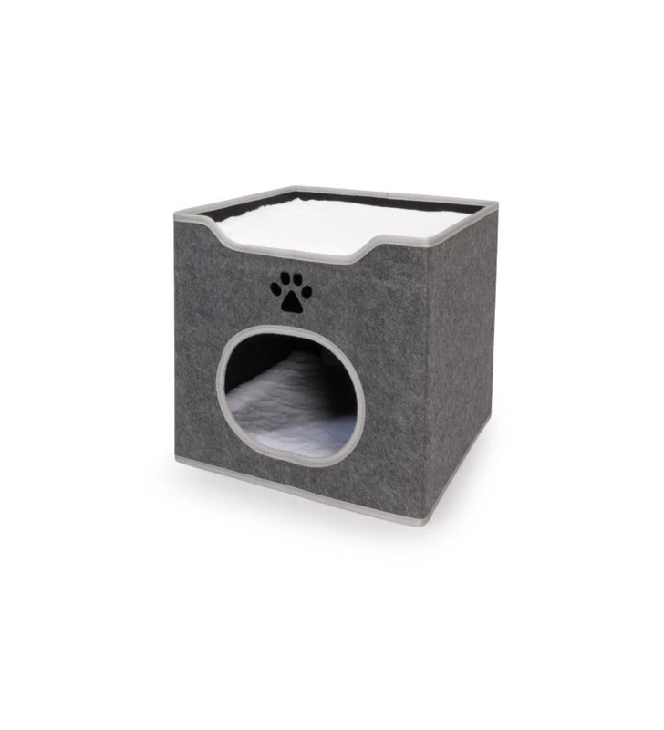 Calda e confortevole cuccia in feltro a forma di cubo per gatti, perfetta per il comodo riposo del tuo felino.