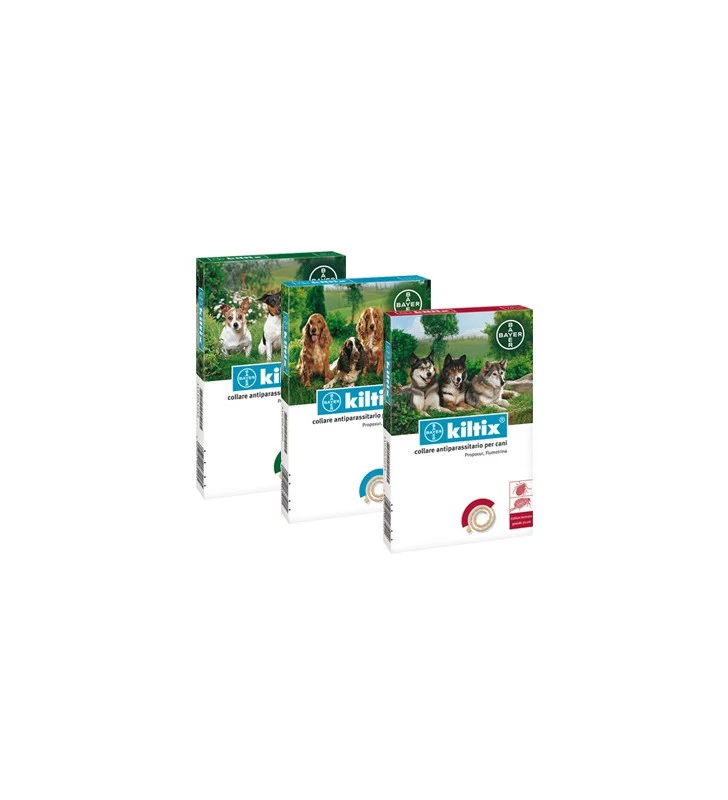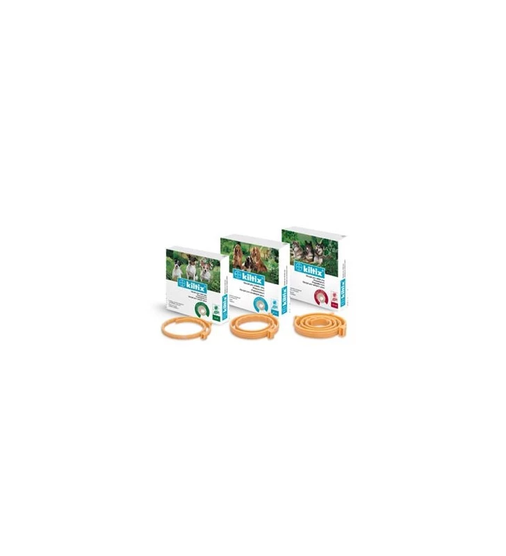 Collare antiparassitario per cani per il trattamento di zecche e pulci. L’azione zecchicida del collare è protettiva per tutta la stagione a rischio. CONFEZIONE collare antiparassitario – formato piccolo 33 cm collare antiparassitario – formato medio 48 cm collare antiparassitario – formato grande 66 cm . Kiltix contiene una polvere micronizzata che si distribuisce rapidamente su tutto il corpo dell’animale e offre una protezione contro zecche e pulci . Con l’applicazione di Kiltix i parassiti muoiono rapidamente durata 4 mesi.