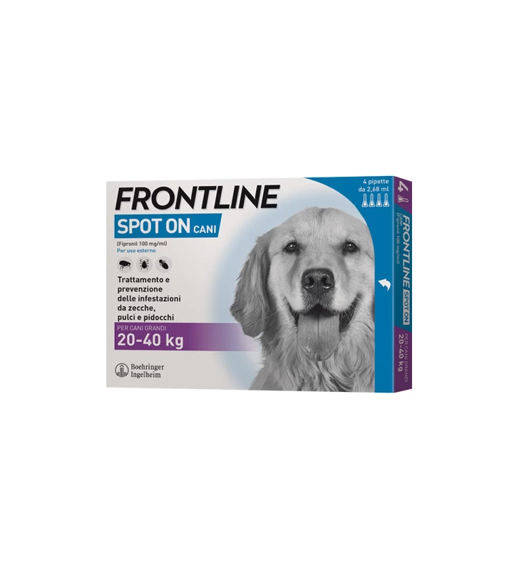 In aggiunta all’utilizzo di FRONTLINE® Spot-On Cani, in caso di infestazioni massive, si consiglia di trattare la cuccia, le coperte e le zone dove vive il cane con un insetticida apposito e di ripulirli regolarmente con un aspirapolvere.