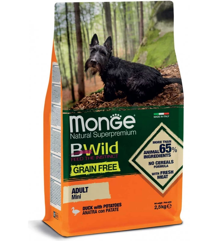 Carne di anatra (disidratata 38% e fresca 10%), patate (20%), grassi animali (17%) (olio di anatra purificato al 99,5%), proteina di patata (8%), lievito di birra, polpa di barbabietola essiccata, proteine animali idrolizzate, olio di pesce (olio di salmone purificato al 99,5%), minerali, mannano-oligo-saccaridi (MOS 1%), xilo-oligosaccaride (XOS 0,3%), yucca schidigera (0,3%), spirulina (0,3%), glucosamina (0,057%), solfato di condroitina (0,04%), proteina di latte in polvere.