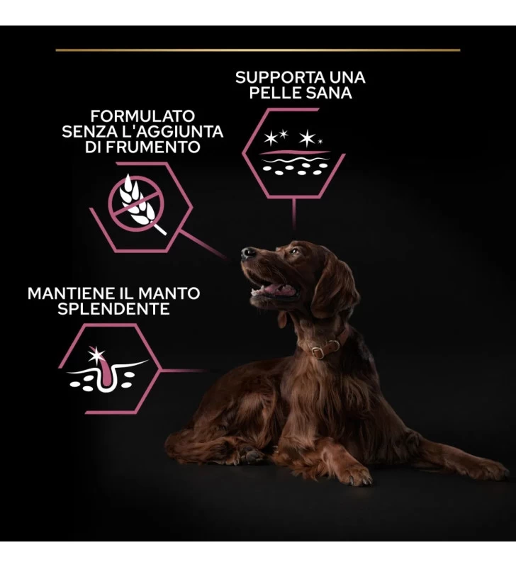 Alimento secco per cani adulti di taglia grande con corporatura atletica e pelle sensibile. Optiderma include una speciale combinazione di nutrienti specifici in grado di contribuire ad una pelle sana e ad un bel pelo, e fonti proteiche selezionate che aiutano a ridurre possibili reazioni della pelle associate ad una sensibilità alimentare.
