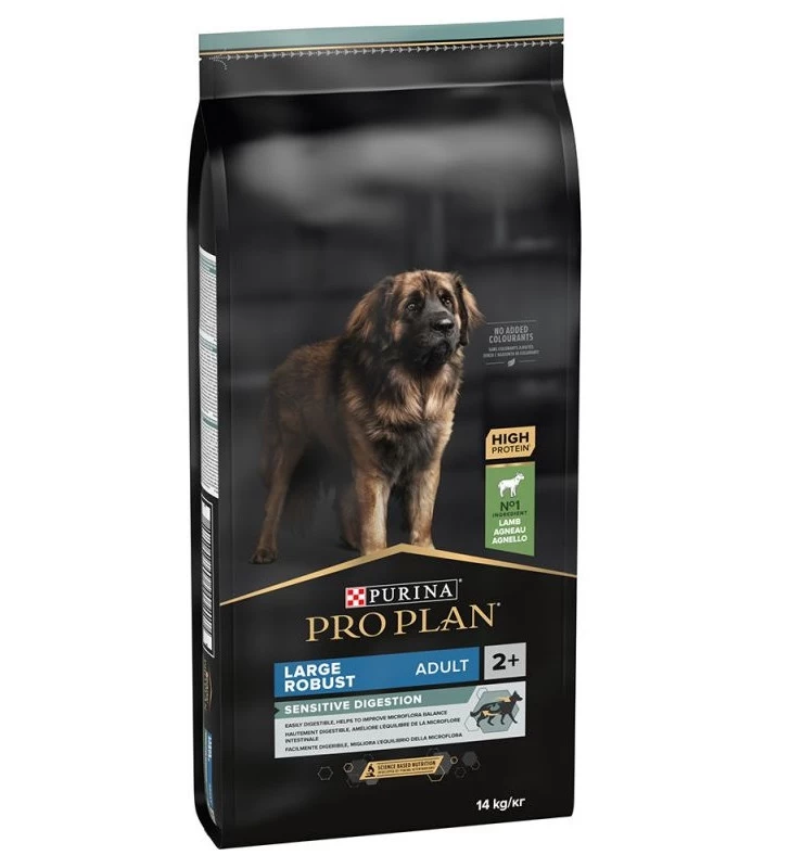 Alimento secco PURINA PRO PLAN Large Adult Robust Sensitive Digestion (ex OPTIDIGEST) per cani adulti di tg grande con corporatura robusta e problemi di sensibilità digestiva, con prebiotici.