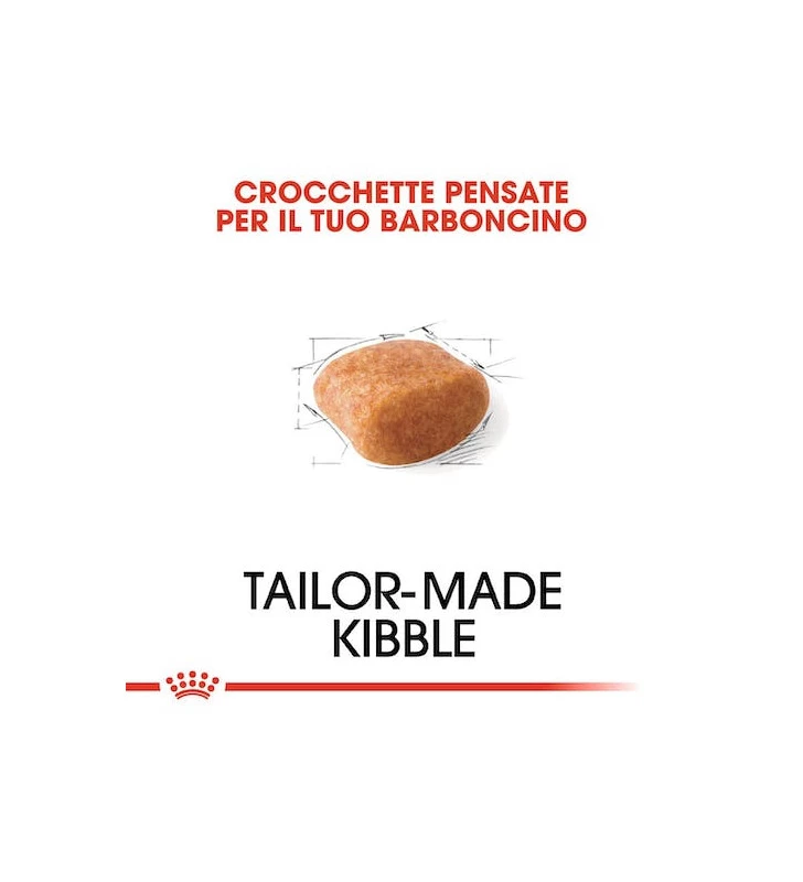 La forma, la dimensione, la consistenza e la formula delle crocchette sono adattate al Barboncino.