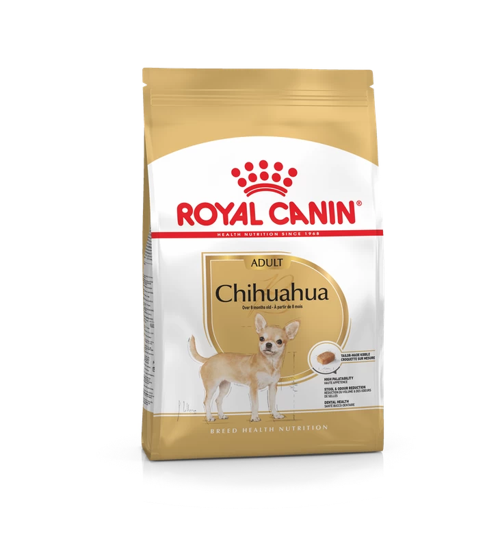 Chihuahua Adult soddisfa l’appetito del Chihuahua grazie alla combinazione di tre fattori: forma e dimensioni della crocchetta, ricetta esclusiva e aromi selezionati.