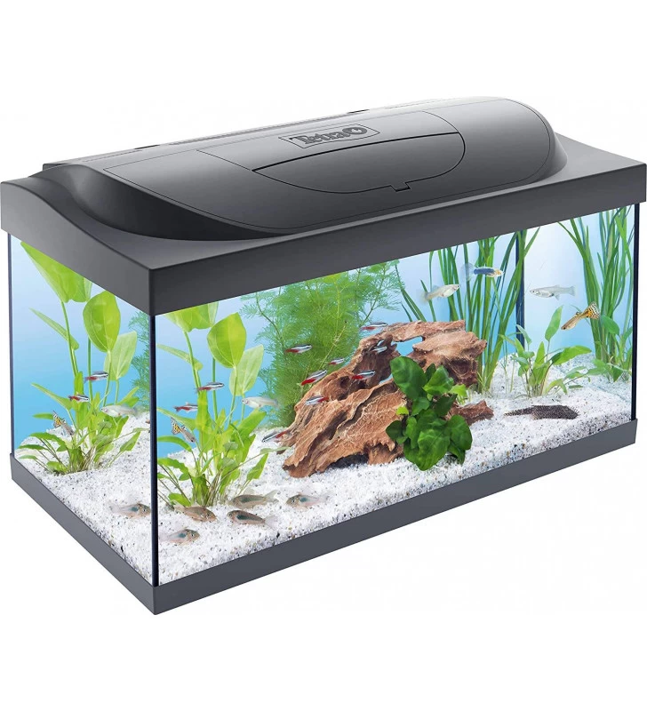 Gli acquari della linea Tetra Starter Line sono la soluzione ideale per muovere i primi passi nel mondo dell’acquariofilia. Oltre ad essere disponibili in due diverse dimensioni (30 e 54 litri), presentano caratteristiche utili e sono dotati di tutta l’attrezzatura tecnica essenziale. Il modello più piccolo è particolarmente adatto per crostacei e piante, mentre l’acquario di medie dimensioni risulta perfetto per ospitare guppy, platy e pesci simili. Non soltanto le vasche sono estremamente robuste, ma i pannelli spessi 4 mm sono realizzati in speciale vetro float per offrire una visione non distorta della vita all’interno dell’acquario da tutte le angolazioni. Inoltre, il coperchio dell’acquario è particolarmente resistente, per evitare, ad esempio, che i crostacei in grado di arrampicarsi possano fuoriuscire. Il pratico sportello per la somministrazione del cibo presente sulla parte superiore consente di alimentare facilmente i pesci senza dover rimuovere completamente il coperchio. La lampada LED da 6 watt integrata nel coperchio illumina l’acquario in modo perfetto e naturale, consuma pochissimo ed è a lunga durata. Il filtro Tetra EasyCrystal in dotazione mantiene l’acqua pulita e cristallina eliminando in modo affidabile ogni traccia di sporcizia e alghe. Ecco come funziona: grazie all’azione filtrante biologica, batteri utili possono insediarsi sulla spugna e sulle sfere filtranti biologiche. Con l’azione filtrante meccanica, invece, un panno filtrante rimuove dall’acqua anche le particelle galleggianti più piccole. Inoltre, grazie alle cartucce filtranti sostituibili, la pulizia del corpo del filtro richiederà pochissimo tempo. Le cartucce possono essere inserite facilmente e senza nemmeno bagnarsi le mani! Per una qualità dell’acqua ottimale, è necessario sostituire le cartucce ogni quattro settimane. Il set contiene una cartuccia di ricambio. La facilità di allestimento e l’attrezzatura tecnica di buon livello rendono quindi l’acquario Tetra Starter Line la scelta ideale per muovere i primi passi nel mondo dell’acquariofilia.