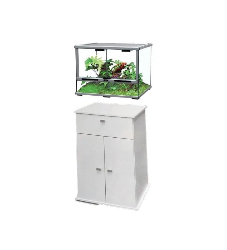 Le versioni alte si adattano perfettamente agli animali arboricoli (serpenti, lucertole tropicali, rane tropicali …). Tutti i modelli hanno un sistema di circolazione e rinnovo dell’aria che garantisce le migliori condizioni per il benessere degli animali. Il coperchio e le porte rimovibili consentono un ampio accesso all’interno, facilitando la pulizia e l’alimentazione. Per una sicurezza ottimale, i terrari sono dotati di un blocco a codice.